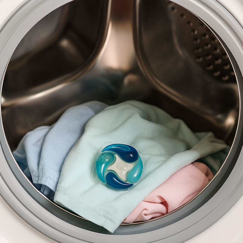 No measuring. No spilling. Just drop a pod into the machine and press start. One pod is all it takes for a full load – saving you time and water with every wash.